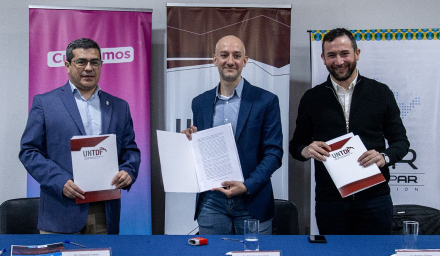 La rúbrica estuvo a cargo del jefe de Gabinete del Municipio, Sebastián Iriarte; del rector de la UNTDF AeIAS, Mariano Hermida; y del presidente de Participar, Ramiro Gómez. Estuvieron presentes integrantes del Gabinete municipal, ediles, docentes y no docentes de la Universidad y miembros de la Fundación.