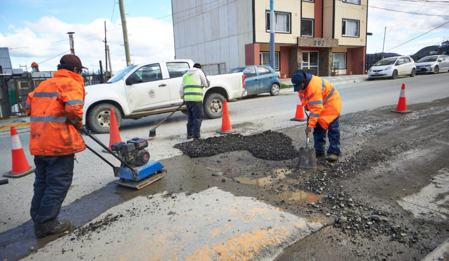 La Municipalidad de Ushuaia, a través de la Secretaría de Inversión y Planificación Pública, da continuidad al plan de bacheo de calles y avenidas que se puso en marcha tiempo atrás con la mejora de las condiciones climáticas y se intensificó con la finalización de la temporada invernal.