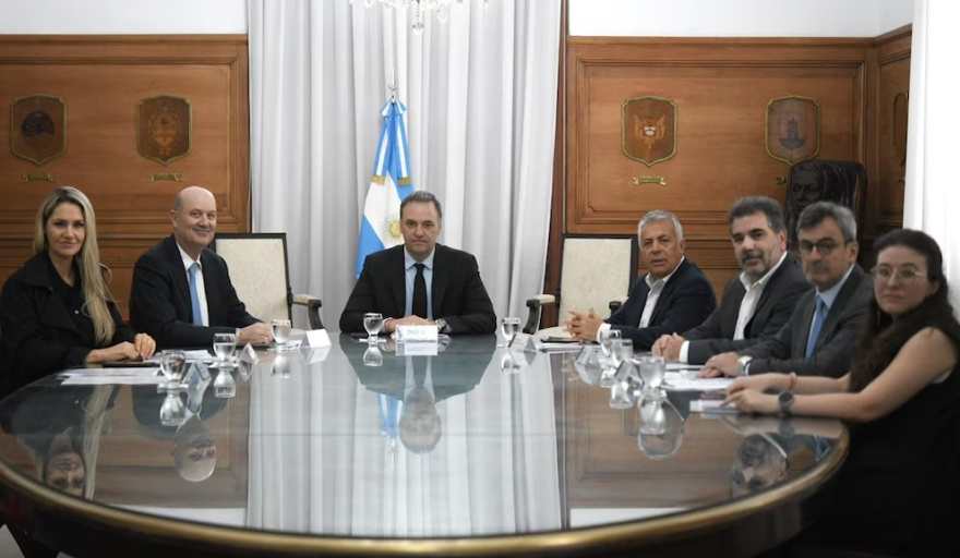 Este mediodía, el exvocero recibió a cinco de seis consejeros para discutir los últimos detalles del documento conjunto. Lo rodearon en la mesa del Salón de los Escudos del Ministerio del Interior, el ministro de Desregulación, Federico Sturzenegger, uno de los autores del proyecto de “modernización” laboral, en representación del Poder Ejecutivo; el gobernador de MendozaAlfredo Cornejo, por las provincias; la senadora nacional Carolina Losada (UCR), por la Cámara Alta; el diputado nacional Cristian Ritondo (PRO), por la Cámara Baja; y el presidente de la UIAMartín Rappallini, por el empresariado.